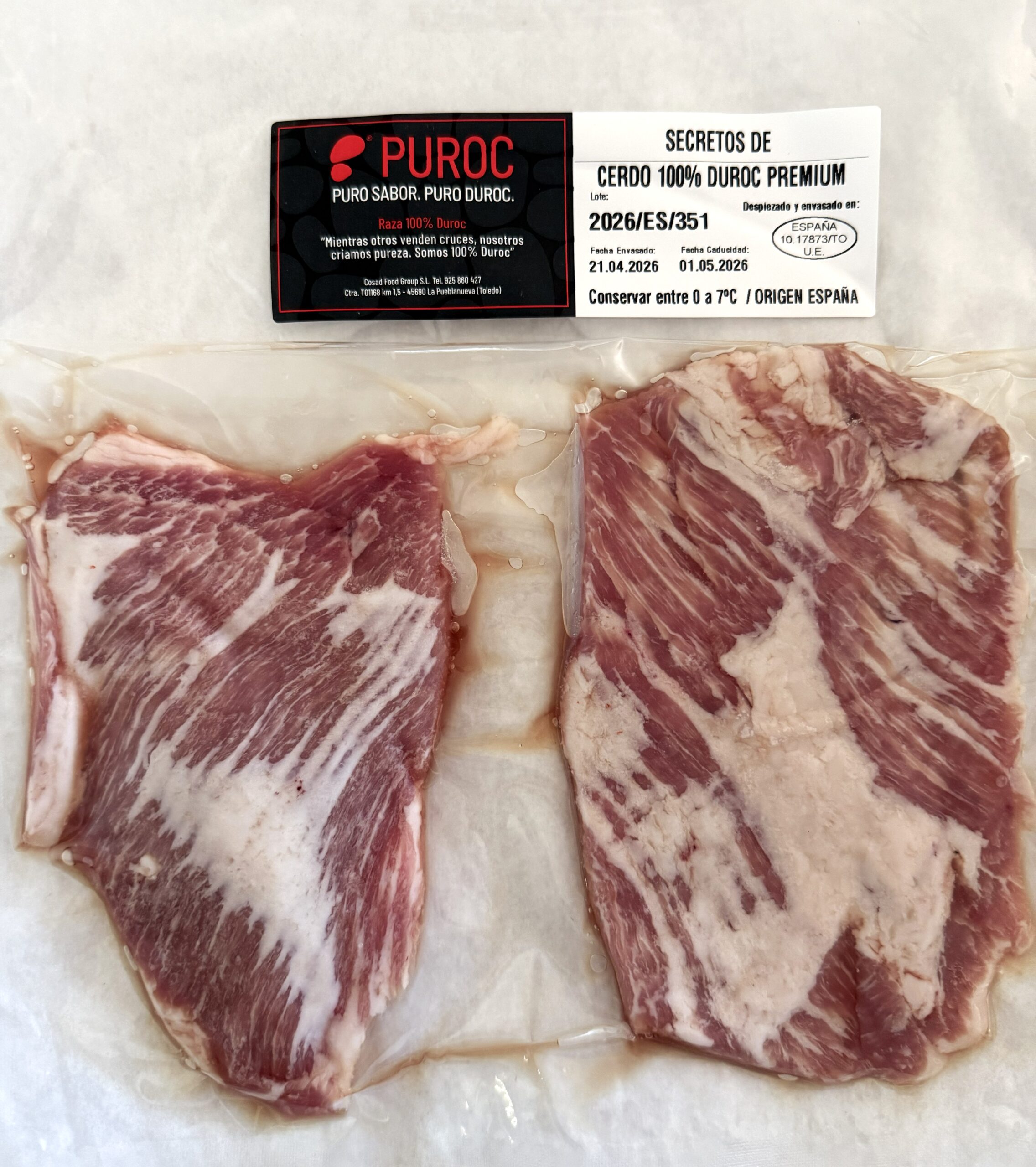 Secreto de cerdo Duroc 100%