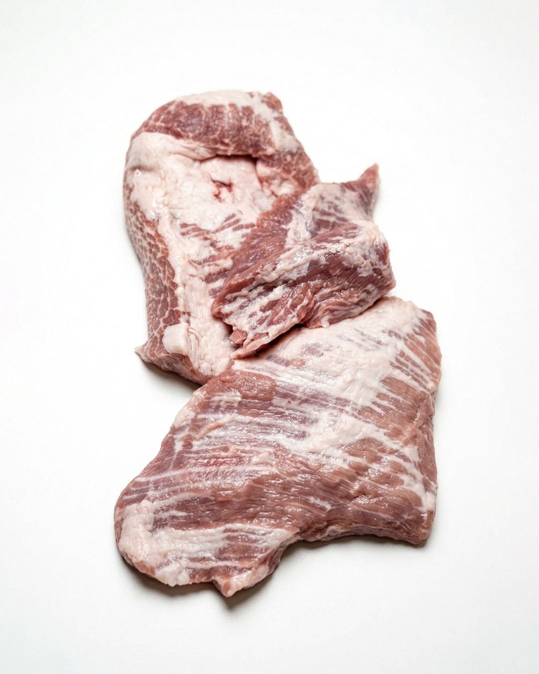 Secreto Duroc 100% obtenido de la zona de la axila del cerdo, en la parte interna de la paleta, cerca del cuello. Pieza muy plana y delgada pero extremadamente veteada, esto hace que sea la pieza más jugosa del cerdo.
